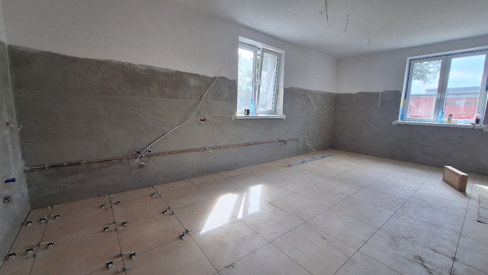 - wyremontowano kompleksowo pomieszczenia: położono gładzie, tynki, obniżono sufity, pomalowano, położono płytki i nakładki PCV na parapety,
