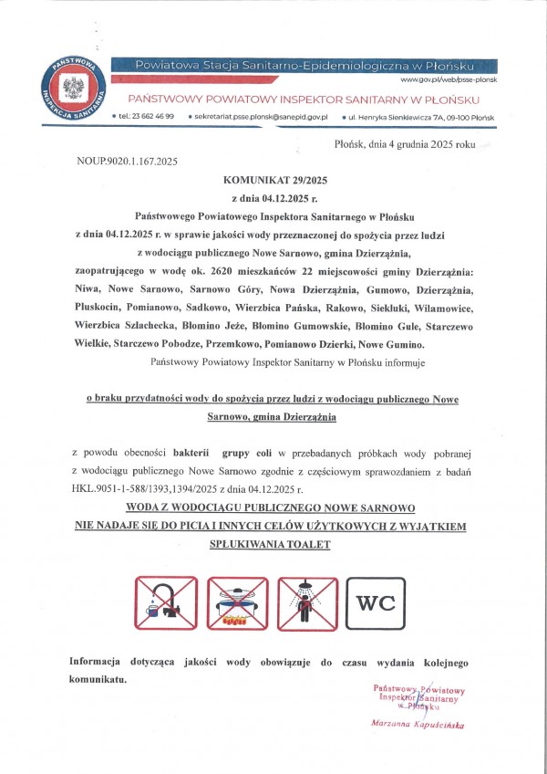 INFORMACJA DLA MIESZKAŃCÓW GMINY DZIERZĄŻNIA