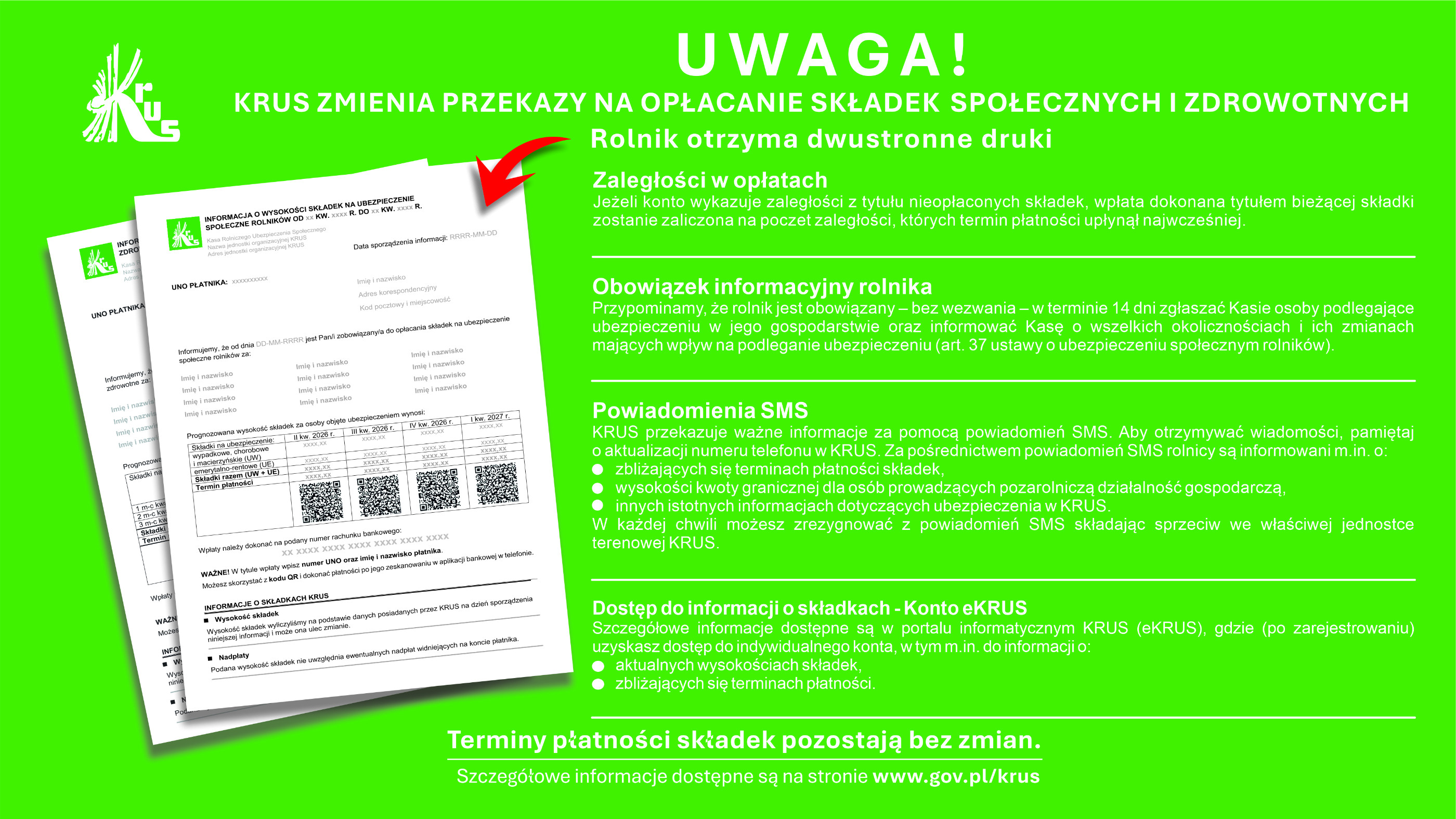 zmiany sposobu informowania o wysokości składek na ubezpieczenie społeczne rolników i ubezpieczenie zdrowotne