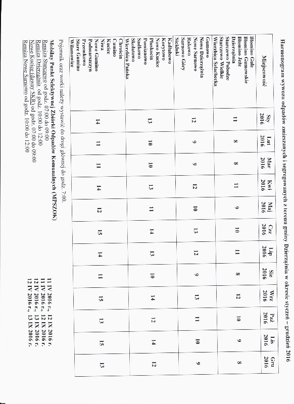 HARMONOGRAM WYWOZU ODPADÓW Z TERENU GMINY DZIERZĄŻNIA W 2016R.