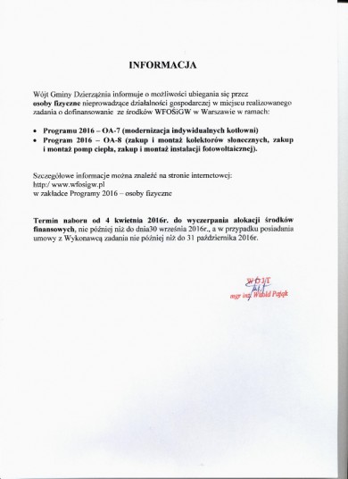 INFORMACJA DLA MIESZKAŃCÓW GMINY DZIERZĄŻNIA