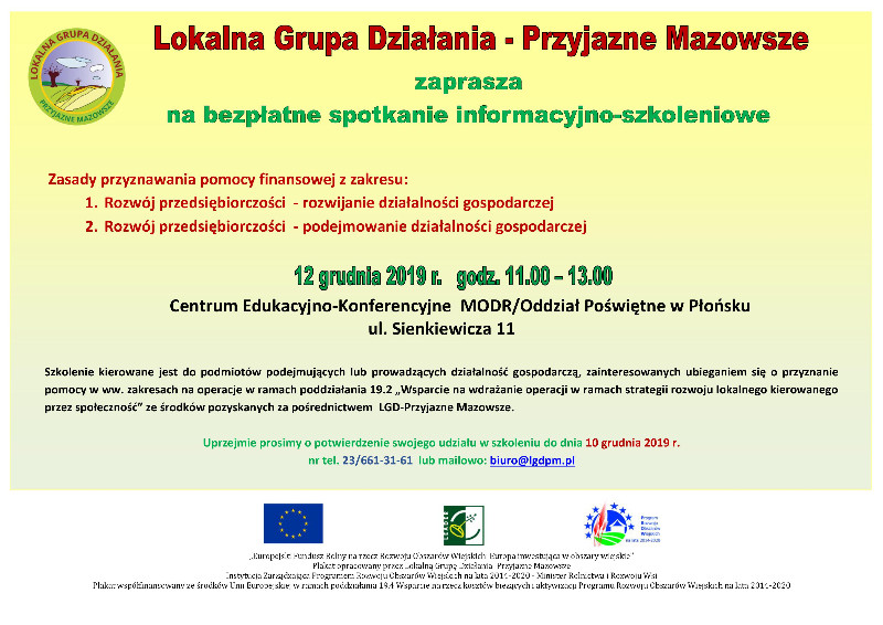 Lokalna Grupa Działania – Przyjazne Mazowsze zaprasza na bezpłatne spotkanie informacyjno-szkoleniowe