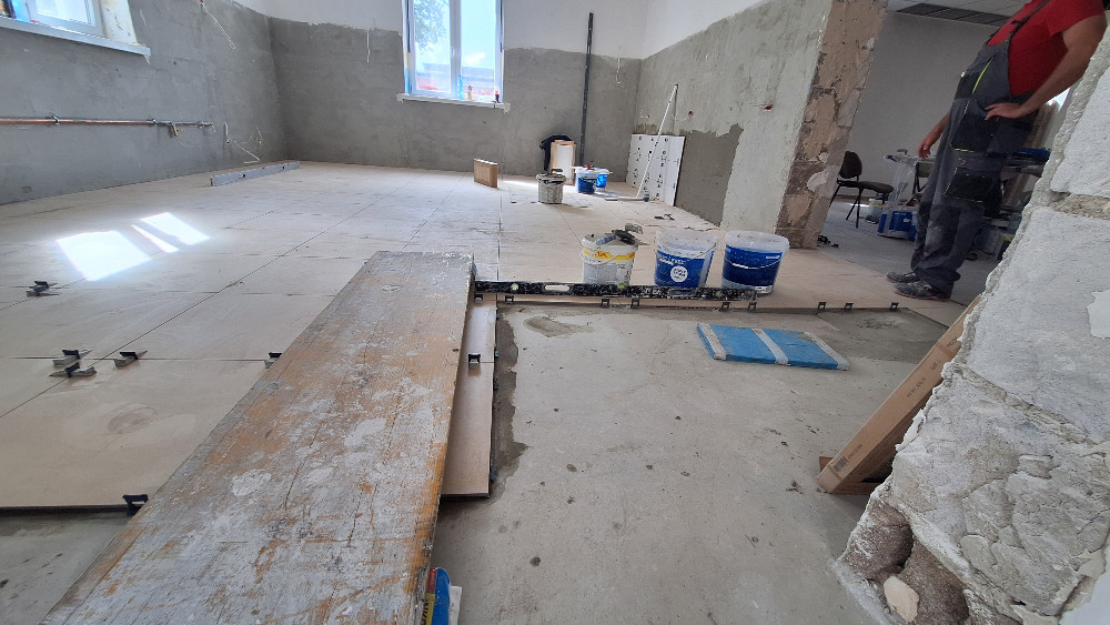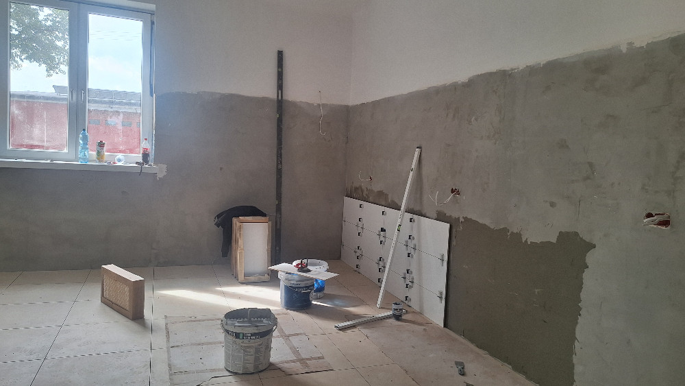 - wyremontowano kompleksowo pomieszczenia: położono gładzie, tynki, obniżono sufity, pomalowano, położono płytki i nakładki PCV na parapety,