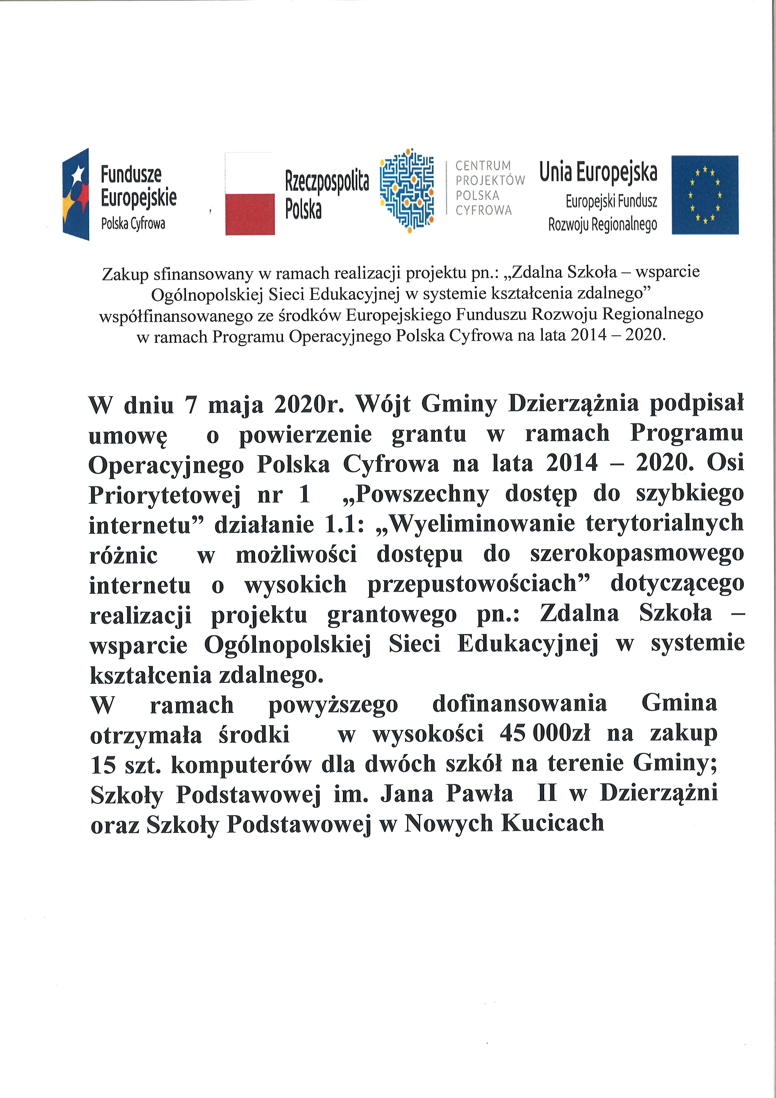 INFORMACJA DLA MIESZKAŃCÓW GMINY DZIERZĄŻNIA