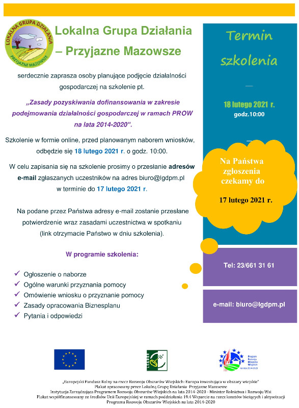 Lokalna Grupa Działania – Przyjazne Mazowsze zaprasza na bezpłatne spotkanie informacyjno-szkoleniowe